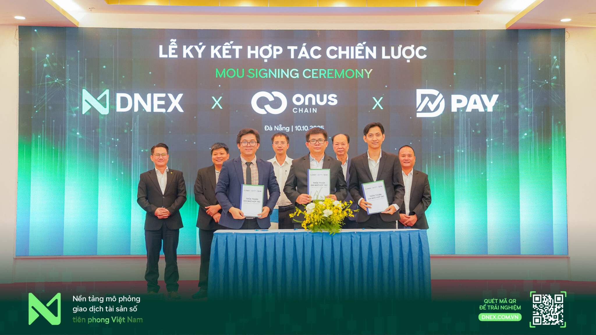 Trong khuôn khổ Lễ ra mắt Nền tảng Giao dịch Tài sản số DNEX tổ chức ngày 10/10/2025 tại thành phố Đà Nẵng, Công ty Cổ phần Sàn giao dịch Tài sản số DNEX, Công ty Cổ phần Công nghệ Chuỗi khối OnusChain và Công ty Cổ phần DNPAY đã chính thức ký kết Thỏa thuận hợp tác chiến lược (MOU).
